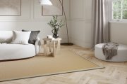 Small in name yet striking in nature, Small Boucle Accents Antique Gold allows you to make a statement without compromising on a timeless look and feel. With a nod to the natural sheen of its sisal fibres, Antique Gold is softened brass in colour, playing on the textural variation of this luxuriously rustic material. The warm neutral palette picks up on other organic accents, whether you prefer simple wooden furniture or plinths of polished stone.