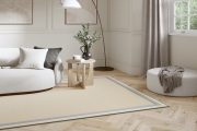 Rugs and runners can be finished with single or double borders, with or without piping. The standard amount of border showing on the rug surface for a single border type is approximately 55mm. If your chosen design has a double border, for example a Cotton Chenille Inner and Linen Boucle Outer, the joint border width will be approximately 110mm. We can offer a 30mm and 80mm border options, please discuss this further with your retailer.