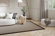 Rugs and runners can be finished with single or double borders, with or without piping. The standard amount of border showing on the rug surface for a single border type is approximately 55mm. If your chosen design has a double border, for example a Cotton Chenille Inner and Linen Boucle Outer, the joint border width will be approximately 110mm. We can offer a 30mm and 80mm border options, please discuss this further with your retailer.