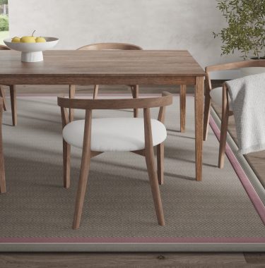 Rugs and runners can be finished with single or double borders, with or without piping. The standard amount of border showing on the rug surface for a single border type is approximately 55mm. If your chosen design has a double border, for example a Cotton Chenille Inner and Linen Boucle Outer, the joint border width will be approximately 110mm. We can offer a 30mm and 80mm border options, please discuss this further with your retailer.