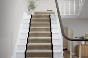 Rugs and runners can be finished with single or double borders, with or without piping. The standard amount of border showing on the rug surface for a single border type is approximately 55mm. If your chosen design has a double border, for example a Cotton Chenille Inner and Linen Boucle Outer, the joint border width will be approximately 110mm. We can offer a 30mm and 80mm border options, please discuss this further with your retailer.