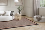 Rugs and runners can be finished with single or double borders, with or without piping. The standard amount of border showing on the rug surface for a single border type is approximately 55mm. If your chosen design has a double border, for example a Cotton Chenille Inner and Linen Boucle Outer, the joint border width will be approximately 110mm. We can offer a 30mm and 80mm border options, please discuss this further with your retailer.