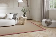 Rugs and runners can be finished with single or double borders, with or without piping. The standard amount of border showing on the rug surface for a single border type is approximately 55mm. If your chosen design has a double border, for example a Cotton Chenille Inner and Linen Boucle Outer, the joint border width will be approximately 110mm. We can offer a 30mm and 80mm border options, please discuss this further with your retailer.