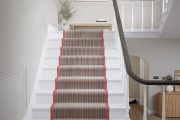 Rugs and runners can be finished with single or double borders, with or without piping. The standard amount of border showing on the rug surface for a single border type is approximately 55mm. If your chosen design has a double border, for example a Cotton Chenille Inner and Linen Boucle Outer, the joint border width will be approximately 110mm. We can offer a 30mm and 80mm border options, please discuss this further with your retailer.