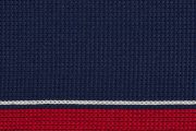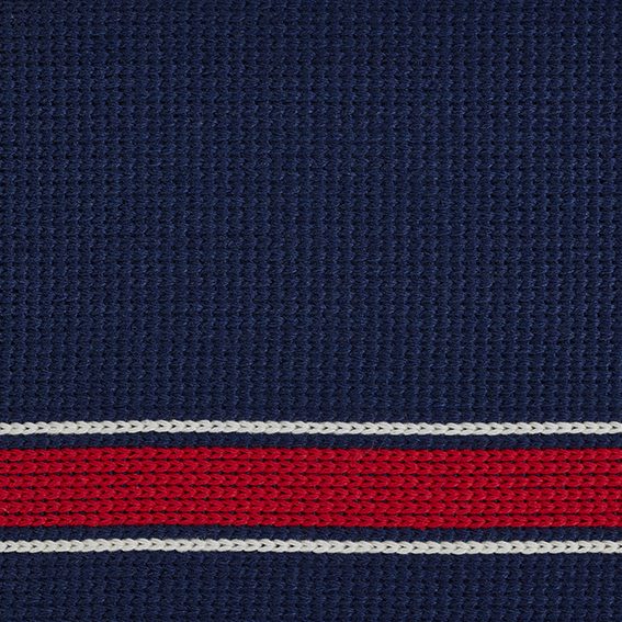 Perfect for rugs of all sizes, styles, and designs, Cotton Broad Stripe Oxford is a captivating embellishment that elevates contemporary interior schemes. The primary shade of this trim exudes an affluent and captivating oxford blue, evoking a sense of timeless elegance and sophistication. This rich hue forms a striking backdrop that beautifully contrasts with the vibrant broad red stripe that is bordered by crisp thin white stripes. The interplay of these refined shades creates a visually captivating pattern that adds depth and visual interest to your rugs and runners.