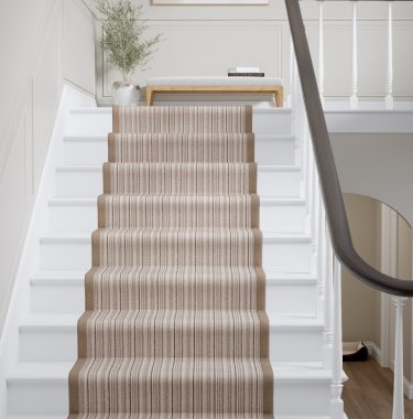 Rugs and runners can be finished with single or double borders, with or without piping. The standard amount of border showing on the rug surface for a single border type is approximately 55mm. If your chosen design has a double border, for example a Cotton Chenille Inner and Linen Boucle Outer, the joint border width will be approximately 110mm. We can offer a 30mm and 80mm border options, please discuss this further with your retailer.
