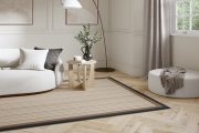Rugs and runners can be finished with single or double borders, with or without piping. The standard amount of border showing on the rug surface for a single border type is approximately 55mm. If your chosen design has a double border, for example a Cotton Chenille Inner and Linen Boucle Outer, the joint border width will be approximately 110mm. We can offer a 30mm and 80mm border options, please discuss this further with your retailer.