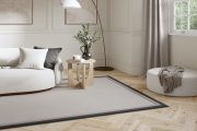 Rugs and runners can be finished with single or double borders, with or without piping. The standard amount of border showing on the rug surface for a single border type is approximately 55mm. If your chosen design has a double border, for example a Cotton Chenille Inner and Linen Boucle Outer, the joint border width will be approximately 110mm. We can offer a 30mm and 80mm border options, please discuss this further with your retailer.
