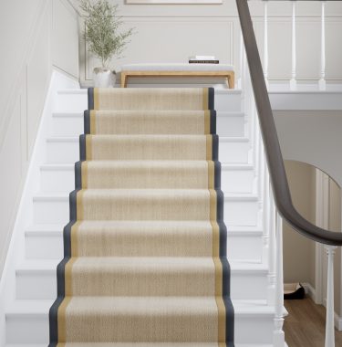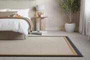 Rugs and runners can be finished with single or double borders, with or without piping. The standard amount of border showing on the rug surface for a single border type is approximately 55mm. If your chosen design has a double border, for example a Cotton Chenille Inner and Linen Boucle Outer, the joint border width will be approximately 110mm. We can offer a 30mm and 80mm border options, please discuss this further with your retailer.