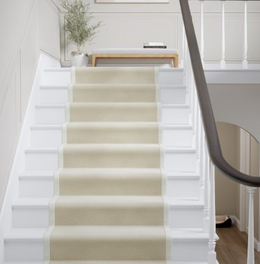 Rugs and runners can be finished with single or double borders, with or without piping. The standard amount of border showing on the rug surface for a single border type is approximately 55mm. If your chosen design has a double border, for example a Cotton Chenille Inner and Linen Boucle Outer, the joint border width will be approximately 110mm. We can offer a 30mm and 80mm border options, please discuss this further with your retailer.