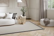 Rugs and runners can be finished with single or double borders, with or without piping. The standard amount of border showing on the rug surface for a single border type is approximately 55mm. If your chosen design has a double border, for example a Cotton Chenille Inner and Linen Boucle Outer, the joint border width will be approximately 110mm. We can offer a 30mm and 80mm border options, please discuss this further with your retailer.