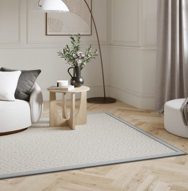 Rugs and runners can be finished with single or double borders, with or without piping. The standard amount of border showing on the rug surface for a single border type is approximately 55mm. If your chosen design has a double border, for example a Cotton Chenille Inner and Linen Boucle Outer, the joint border width will be approximately 110mm. We can offer a 30mm and 80mm border options, please discuss this further with your retailer.